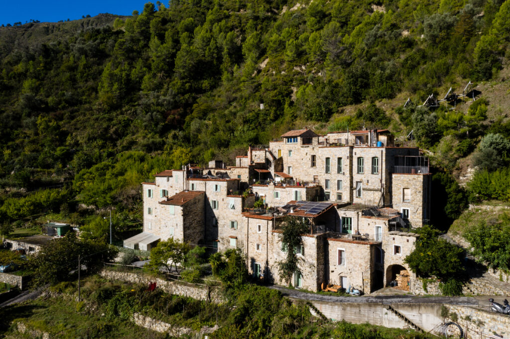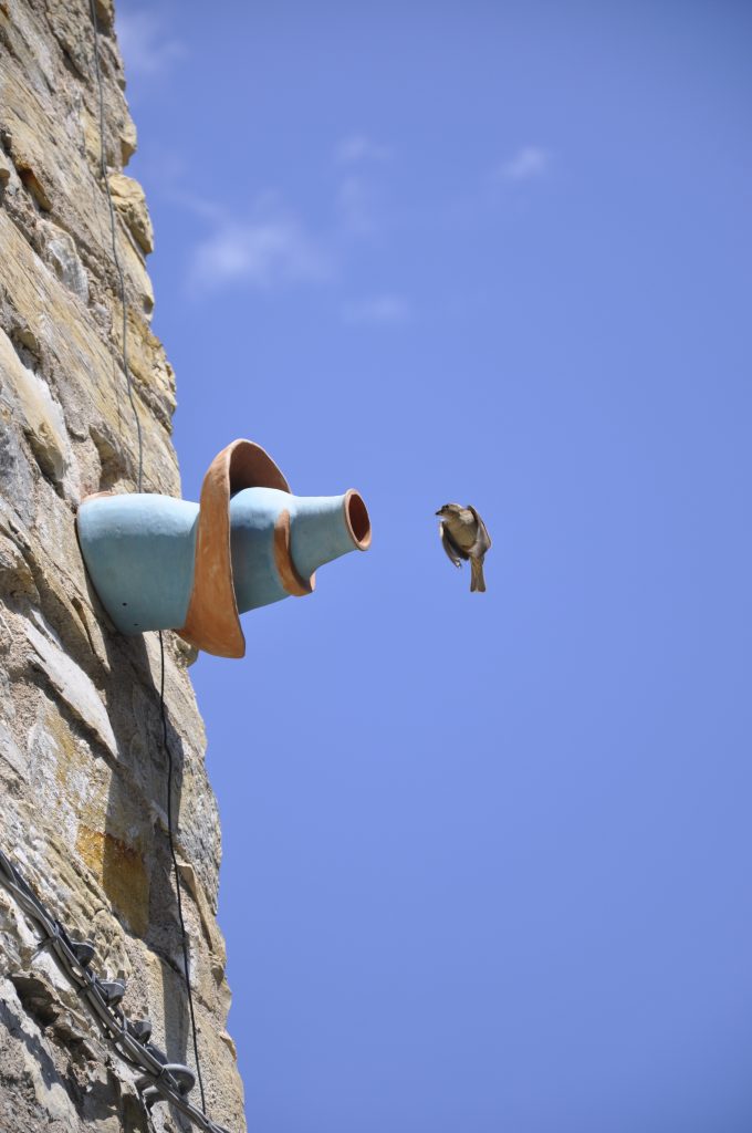 Through the use of clay, the artist Marguerite Kahrl has given life to a creative reinterpretation of traditional terracotta vases designed to capture nesting birds. These works, called relational nests, have recently been installed in the village of Torri Superiore in harmony with the high stone walls and have already begun to be inhabited.